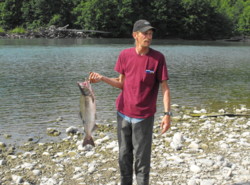 July 23 Our Mobile Van took this photo of Trevor Kozlouski holding a Pink that he caught under the Haisla Bridge on the Radley Park side.