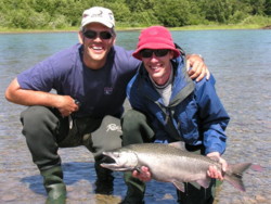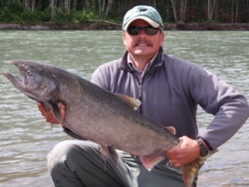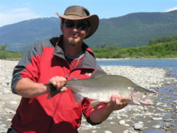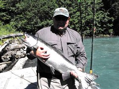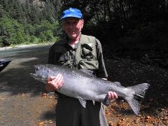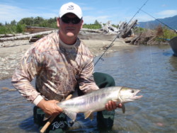July 19 Eric Neidert also an Associate Guide for Reliable Guide and Charters guided Steve Roskell and Milt Smith on a Drift down the Kitimat River. Milt landed this 23lb Chinook on their drift as well as 12 Pinks and 3 Chum. Thank You for using our services. Congratulations! Good Job Eric!