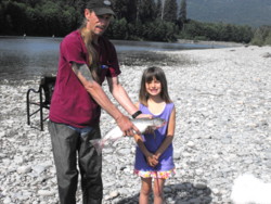 July 21 Diane our Mobile Tackle Van driver photographed Dave Primrose fishing with his grand -daughter Lexxy Lewis age 7. Each caught a Pink at the Lower Dike.Well Done Lexxy and Grandpa Dave! Congratulations!