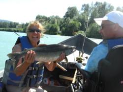 July 20 Aliceyn Fokuhl fishing with her fishing partner Maureen landed a 36lb beauty late Monday evening. Wow! Nice fish Aliceyn! Well done! Ladies can catch Big Chinook too!