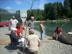 Special Thanks to some very special people. The Crab catching crew, the pink jig crew, the rig tying crew, the line spooling crew, the drift boat crew, the Crab cooking and shucking crew, the bus driver, the wheel chair boat loading crew, the volunteer ladies and the guys who were at the Pump House who helped out.
