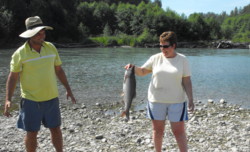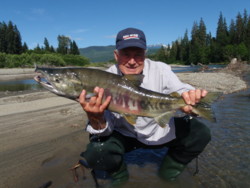 KITIMAT RIVER: The Kitimat River is full of Salmon right now. There are Chinook, Chum, Pinks and there were a couple of Coho caught this week. There was even another Sockeye caught and released. The highlight this week was the number of Pinks that were caught. Pink Salmon has evolved into a very popular fishery for all ages. From youngsters to seniors all anglers are having a blast catching the Pinks. The most popular methods for catching the Pinks are jigging Pink jigs and casting 3/8 oz .Cerise Clear Gibbs Crocs or fly fishing.
