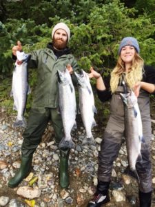 PHOTO OF THE WEEK: SEPT 18 JALISA SCHABER AND FRASER McLEOD, STAFF MEMBERS OF RON'S MOBILE TACKLE AND BAIT SHOP ARE PROUDLY HOLDING THE COHO THEY CAUGHT ON OUR MORNING DRIFT . Please see more details below. Sept 18: Lisa, Fraser and I decided to do some multi-tasking during our Drift on the lower Kitimat River. In addition to fishing we held a staff meeting, did some tackle testing, brain stormed some marketing strategy, travel and holiday planning and did a little trash talking in between hooking and landing Coho. Jalisa was also developing her skills on the oars. Captain Jalisa put Fraser and I on to 4 or 5 Coho. Well done Captain Jalisa. Sept 18 Jeremy Peters proudly...